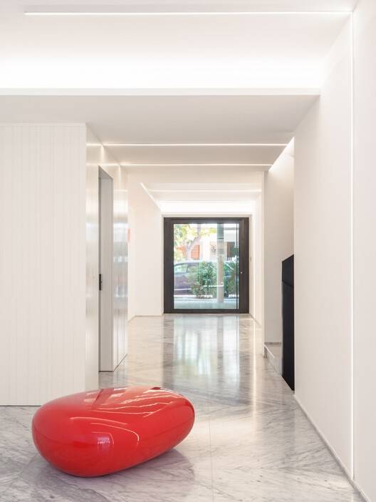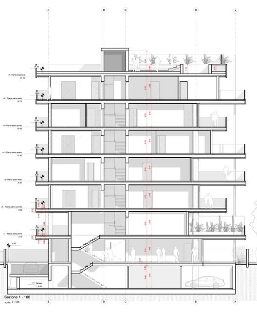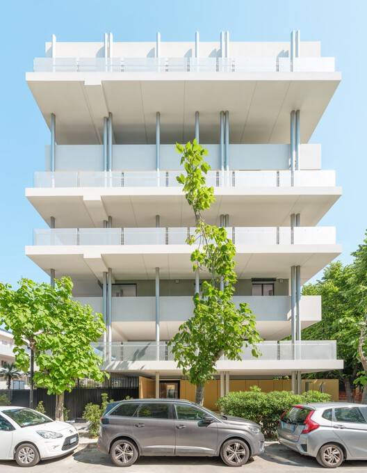 Text description provided by the architects. The new building at Via De Amicis 154, designed by Giovanni Vaccarini Architetti in the center of Pescara, reinterprets the concept of a residential structure, blending traditional typology with a more direct connection to the urban environment. The new building at Via De Amicis 154, designed by Giovanni Vaccarini Architetti in the center of Pescara, reinterprets the concept of a residential structure, blending traditional typology with a more direct connection to the urban environment. Conceived as a series of overlapping residences, the new architecture by Giovanni Vaccarini opens onto the city through spacious terraces that extend variably around a central core. The building's ground level steps back from the street frontage, occupying only a minimal portion of the lot and creating the conditions for continuity with the surrounding public space. The center of Pescara is built on a modern urban fabric where the Adriatic coast and its linear development serve as a key reference. Giovanni Vaccarini, whose studio has been based in Pescara for many years, has repeatedly explored his architectural ideas within this context and the cultures that have shaped it. Vaccarini—an influential figure in Italian architecture—has developed numerous works and projects examining the interplay between private and public spaces, spanning diverse building types and scales: residences, schools, stadiums, energy production facilities, and hospitals. For Vaccarini, the city of Pescara is a place of experimentation, where he can modify established typologies. The palazzina, a multifamily residential building and a focal point of his research, is one such typology.