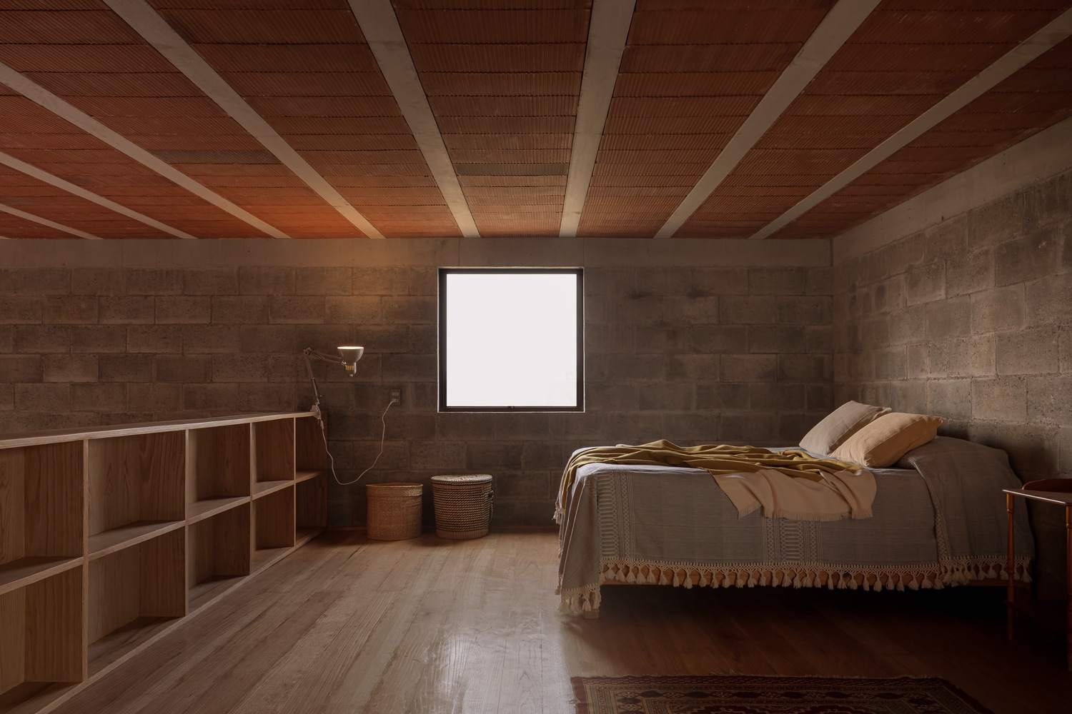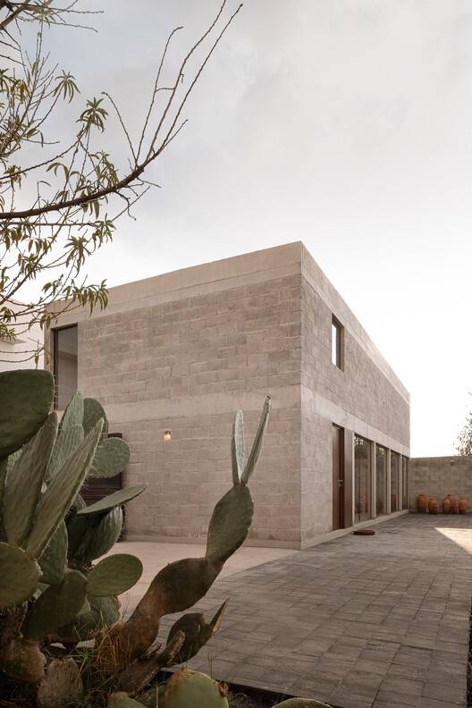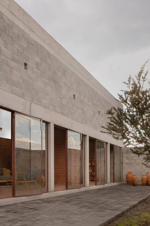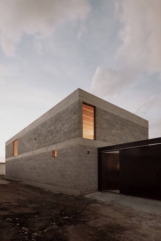 Text description provided by the architects. This house is located in a semi-rural area on the outskirts of Toluca. The clients, a newlywed couple, were looking for an affordable home that could be built in stages, adapting to the growth of their family. The first stage of the house consists of a high-ceilinged pavilion shaped like a rectangular prism, built with concrete and cement blocks.