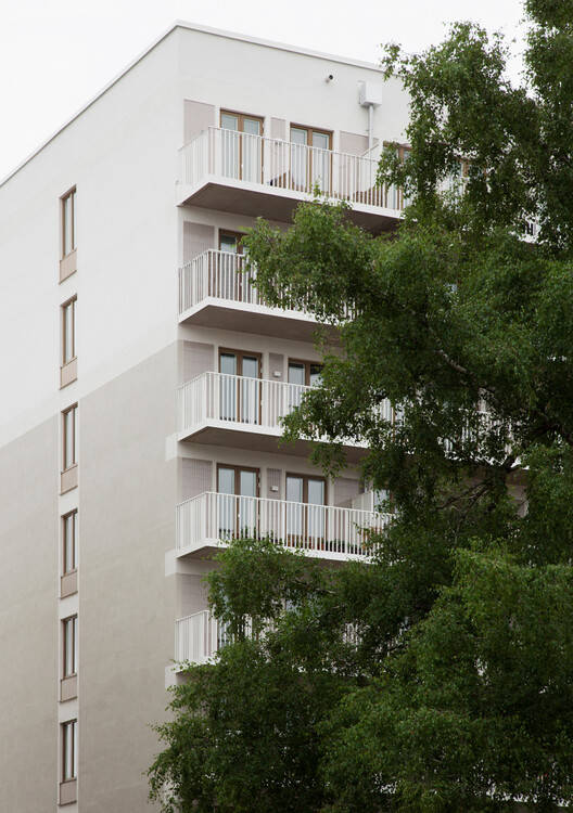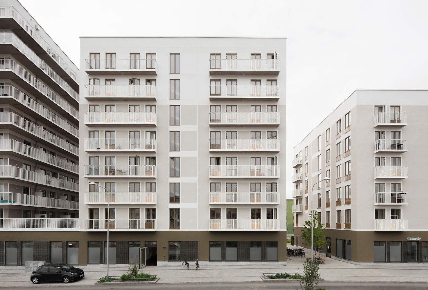 Text description provided by the architects. The development covers half of a city block facing the central square and the main street in a new district in Uppsala, establishing urban character and clearly defined spaces. A total of 161 apartments are distributed in three buildings of six, eight and ten floors, finished with rendered facades that have a regular design and are detailed with fine plaster variations that accentuate the volumes.