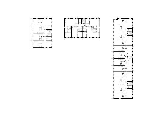 两座最高的建筑共用一层,其中包括一个健康中心。这些房子的大小和高度各不相同,但通过一种共同的物质语言相互连接。