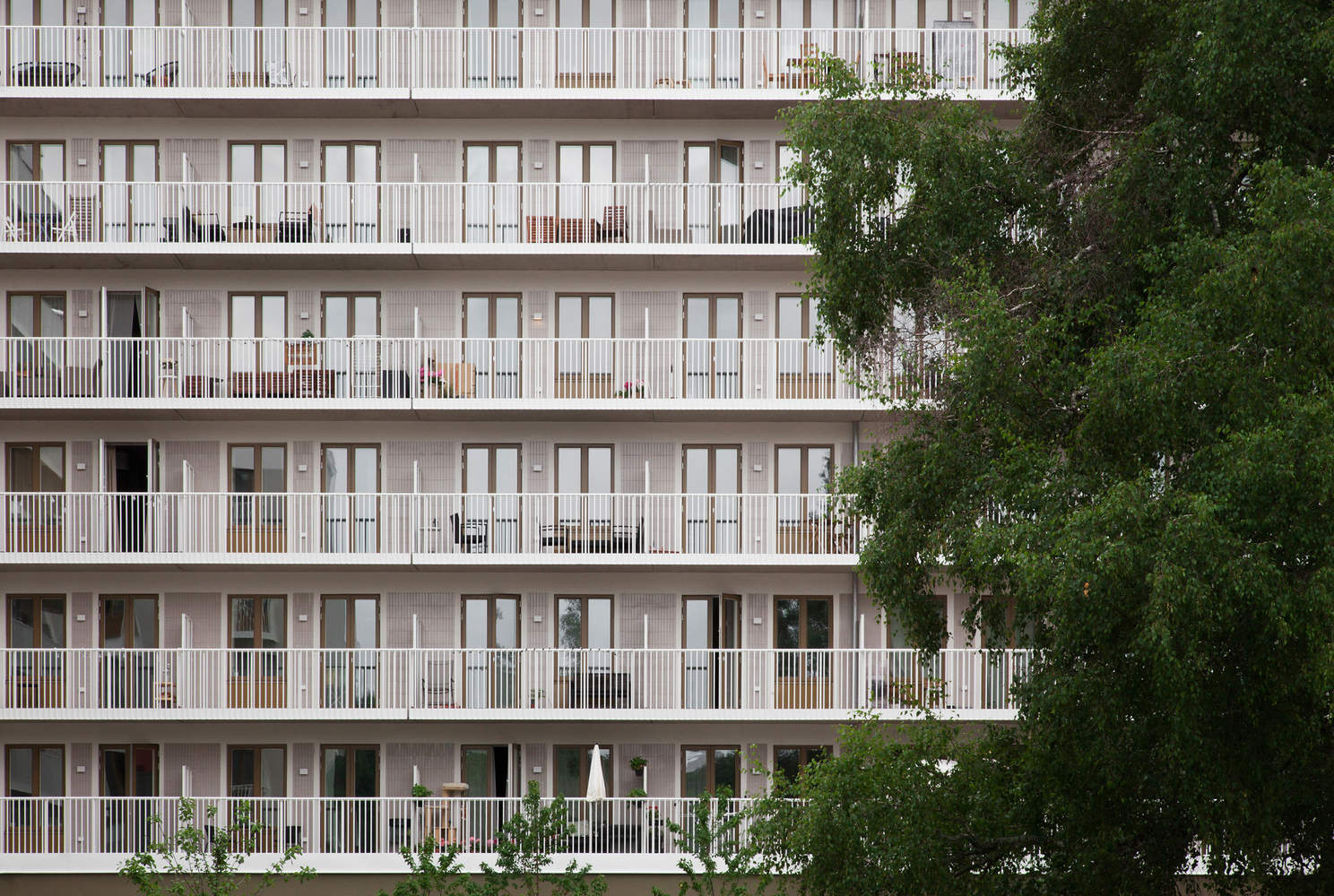 城市肌理的塑造与空间定义:该项目最引人注目的地方在于其对城市肌理的塑造。建筑师巧妙地利用了街区的一半面积,在乌普萨拉新区中确立了清晰的城市空间。通过三栋不同高度的建筑——六层、八层和十层,项目在视觉上形成了层次感,并与周围环境相协调。外立面采用规则设计,辅以精细的灰泥变化,这不仅增强了建筑的体量感,也提升了建筑的质感,使其在整体设计上具有统一性。这种对城市空间和建筑形式的精确把握,体现了设计师对城市规划和建筑设计的深刻理解,值得称赞。