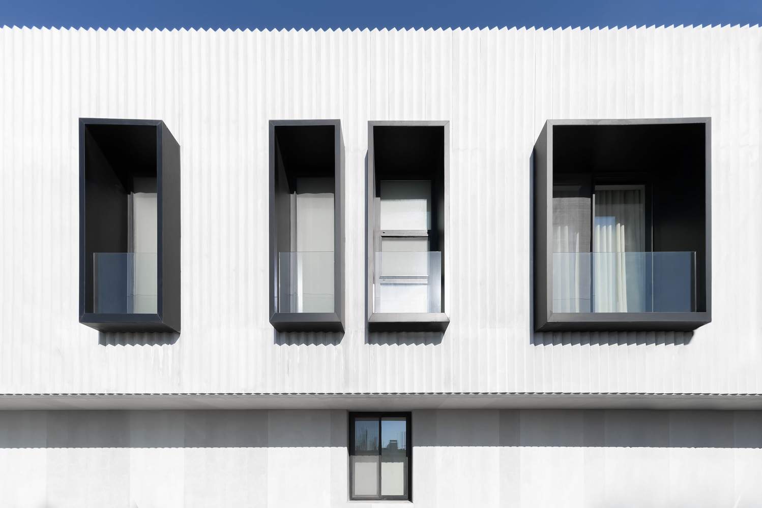 外观的几何美学与材料的和谐: 建筑的外观设计充分展现了现代建筑的精髓。天然石材被切割成精美的三角形元素,构建出一个富有节奏感的几何立面。这种设计手法,既体现了建筑的现代感,又利用光影变化赋予了立面丰富的表现力,使其在不同的光照条件下呈现出多样的视觉效果。同时,设计师对材料的选择也十分考究,天然石材与金属框架的结合,既保证了建筑的耐久性,也提升了整体的质感。这种对几何形式的运用和材料的精心选择,共同营造出一种既现代又永恒的建筑风格。