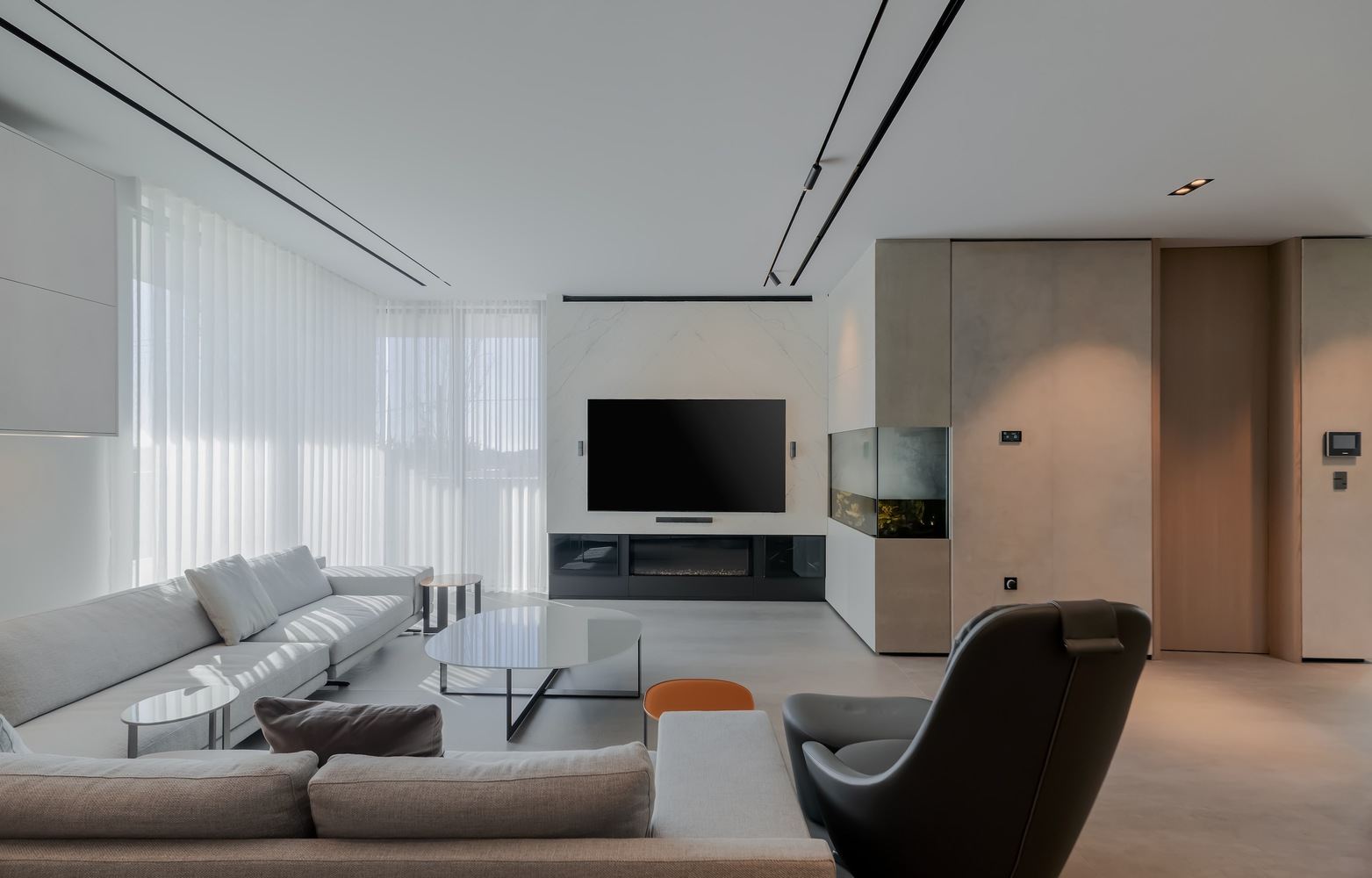 内部的宁静氛围与整体的居住体验: "框架住宅"的内部空间设计延续了外观的精致和对品质的追求。设计师在材料的选择上,以天然材料为主,木质材料的温暖和石材的清凉相互呼应,创造出和谐的空间氛围。室内色调以柔和的灰色为主,营造出一种宁静而精致的背景,为居住者提供了放松和舒适的生活环境。该项目不仅仅是建筑本身,更是一个精心策划的居住体验。它将现代设计原则与周围的自然美景巧妙地融合,创造出令人惊叹的生活环境,充分体现了建筑设计对居住者生活品质的深刻关注,并实现了建筑与环境的和谐统一。