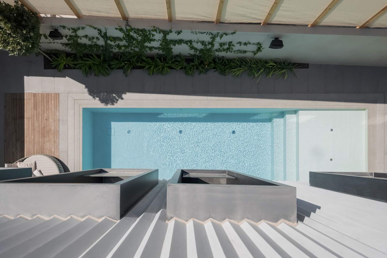 空间的核心与光影的叙事: "框架住宅"项目最令人印象深刻的在于其中庭的设计。双体量中庭不仅是建筑的中心,更是光影的舞台。建筑师巧妙地利用玻璃屋顶引入自然光,创造出一种空灵而富有层次的空间体验。这种设计手法将光线转化为一种建筑语言,使室内空间产生动态的变化,光影的互动赋予了空间生命力,营造出一种引人入胜的氛围。这种对光线的精妙运用,超越了简单的采光需求,提升了整个项目的艺术性和居住品质,使得空间本身拥有了诗意和故事性。