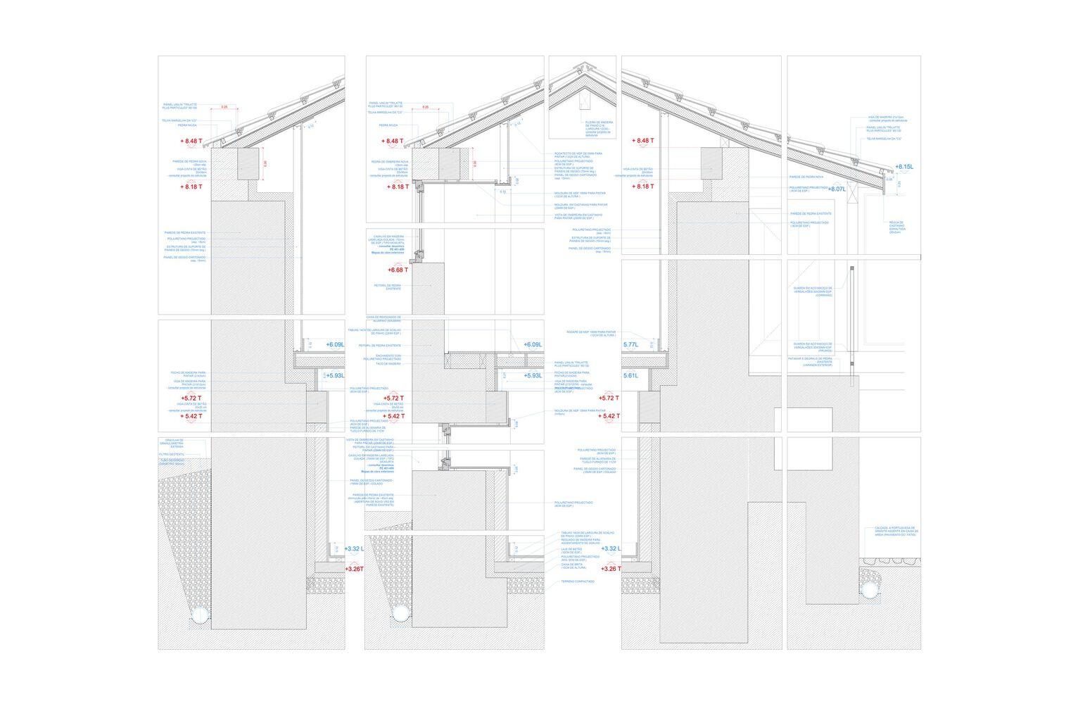 为了适应补充项目,建议在现有增建部分废墟建议的植入后,将房屋向西延伸。因此,提出了第一延伸体积(B),其以相同的高度和结构特征延伸现有的房屋,并形成位于脱粒场水平的较低和扩展体积(C)的铰链,与景观直接相关,容纳集体项目和旅游单元的美食。这座建筑沿着自然地形的轮廓方向安装,就其建筑语言而言,对现有建筑的物质性进行了当代诠释。新建筑采用外露的混凝土外墙、马赛瓦屋顶和木制外窗框。