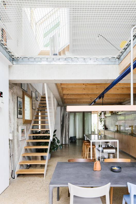 在内部,干预措施质疑了房子的传统程序,即昼夜区分,以提供一个有趣、友好、慷慨、不断发展和负责任的地方。这个想法是通过对去隔室化和视觉疏松的反思,在体积上而不是在地板上工作,以刺激、强化甚至发明用途,提高居民的生活质量。