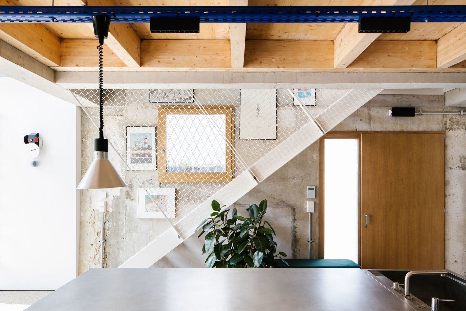 在这里,天窗变成了阅读吊床或投影室,楼梯平台变成了洗衣房和游戏室,客厅看起来像是主卧室的延伸……结构和家具融合在一起,构成了建筑装置。