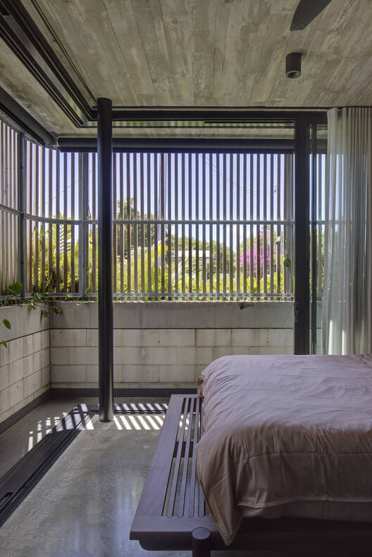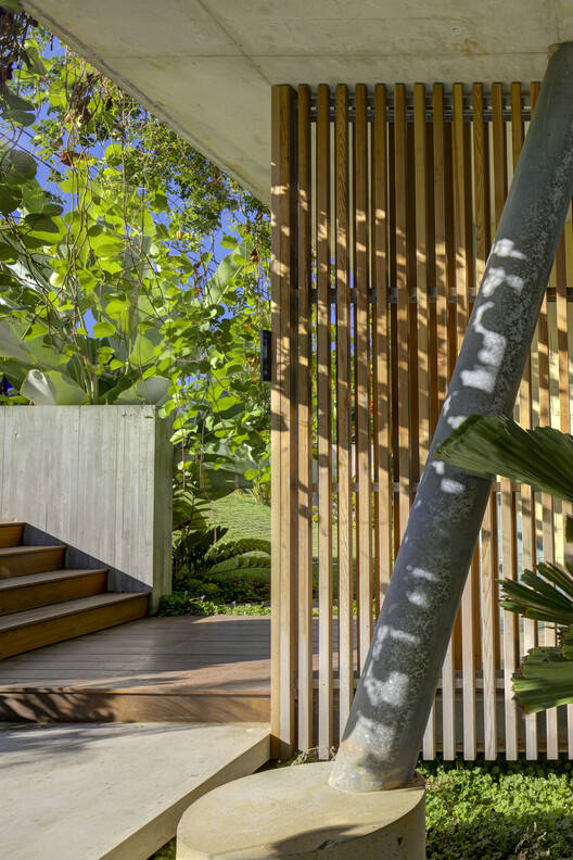 通风与遮阳的巧妙结合: 项目最突出的亮点在于其对当地气候的深刻理解和应对。设计师巧妙地利用高层空间捕捉海风,结合木质遮阳阳台和巨大的屋顶悬挑,创造出良好的通风条件和遮阳效果,从而减少了对空调的依赖,体现了对可持续设计的实践。这种设计不仅优化了居住体验,也与当地炎热潮湿的气候条件完美契合,体现了对建筑与环境的和谐统一的追求。内部空间与外部阳台的无缝连接,模糊了室内外的界限,营造出开放、轻松的氛围,更进一步提升了居住的舒适度。