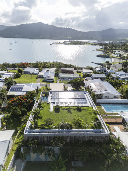 Text description provided by the architects. Airlie Beach is the gateway to the Whitsunday Islands and is the major tourist departure point for the Great Barrier Reef. A cruel irony is that the town's own beach is not swimmable from October to May because it's full of marine stingers, jellyfish, and sharks. Because of that, Airlie Beach has built a giant man-made community pool along the foreshore, just behind the Main Street shops. Most local people don't use it as they have a pool in their house.