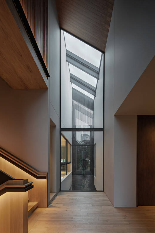 空间布局的巧妙与灵活性:项目在空间布局上展现了卓越的创造力。设计师将功能空间划分为四个独立的“盒子”,并通过中央的空隙连接,这个空隙不仅引入了充足的自然光线,也促进了空气的流通。这种开放式的设计理念,使得室内空间通透明亮,营造了宜人的居住氛围。同时,建筑师还通过楼层之间的细微错层、木制露台的设计,以及灵活的开合式分隔面板,增强了空间的灵活性和互动性,满足了居住者对多样化生活方式的需求。