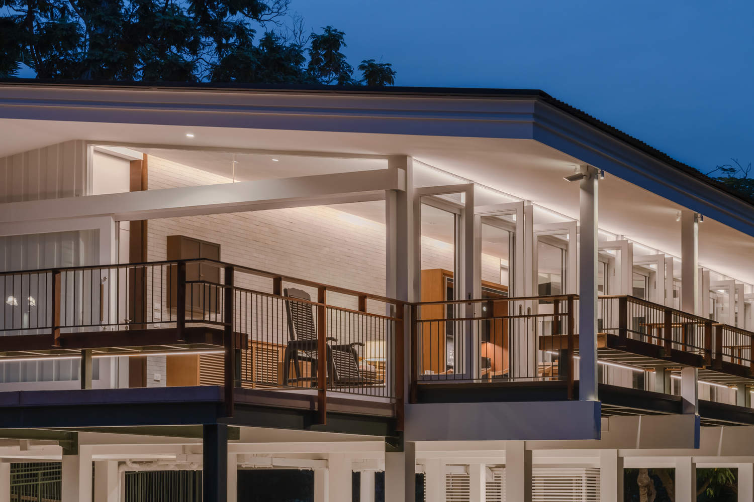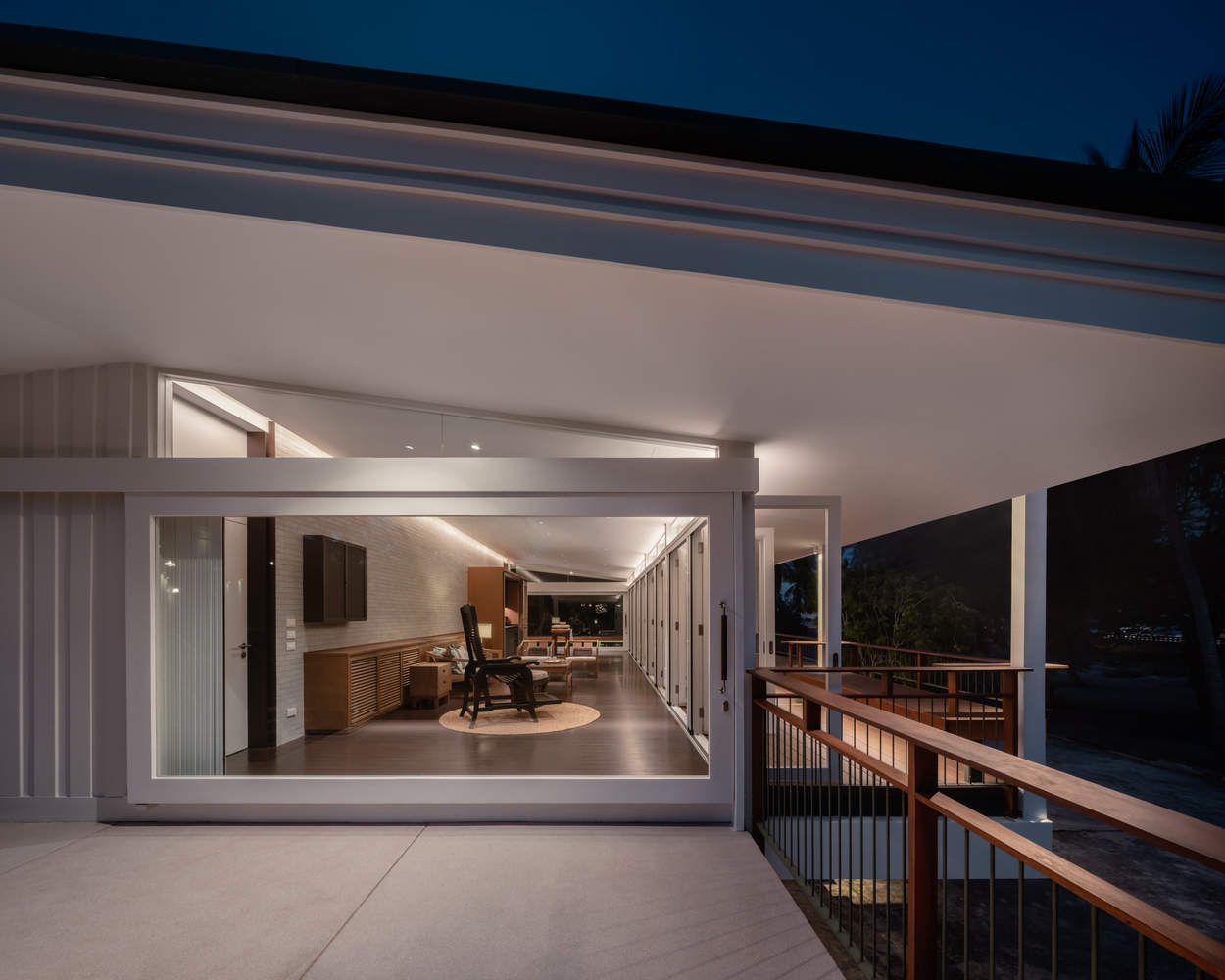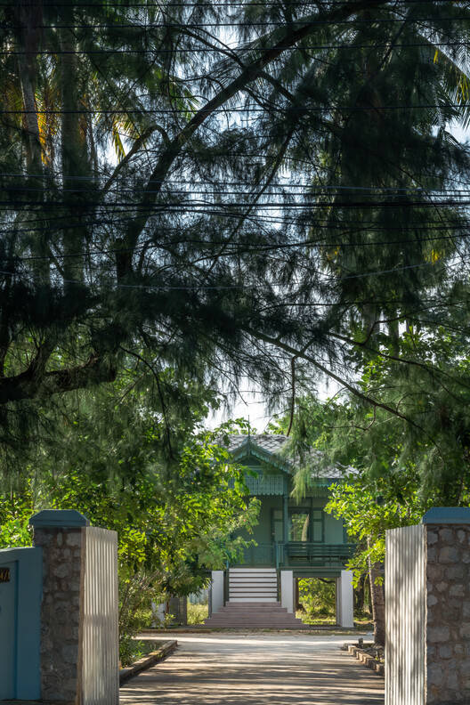 尊重历史与记忆的传承:该项目最令人印象深刻的亮点在于其对场地历史和家庭记忆的深刻尊重。设计师没有选择推倒重建,而是以一种审慎的态度进行翻新,保留了原有的建筑结构,并通过研究皇家学院的调色板,准确还原了旧时代泰国建筑的色彩,赋予了建筑新的生命力。这不仅是对建筑本身的尊重,更是对家庭几代人情感连接的延续。设计师与业主密切合作,确保建筑不仅仅是一个物理空间,更是一个承载着家庭记忆的场所,体现了对文化和历史的敬畏之心。
