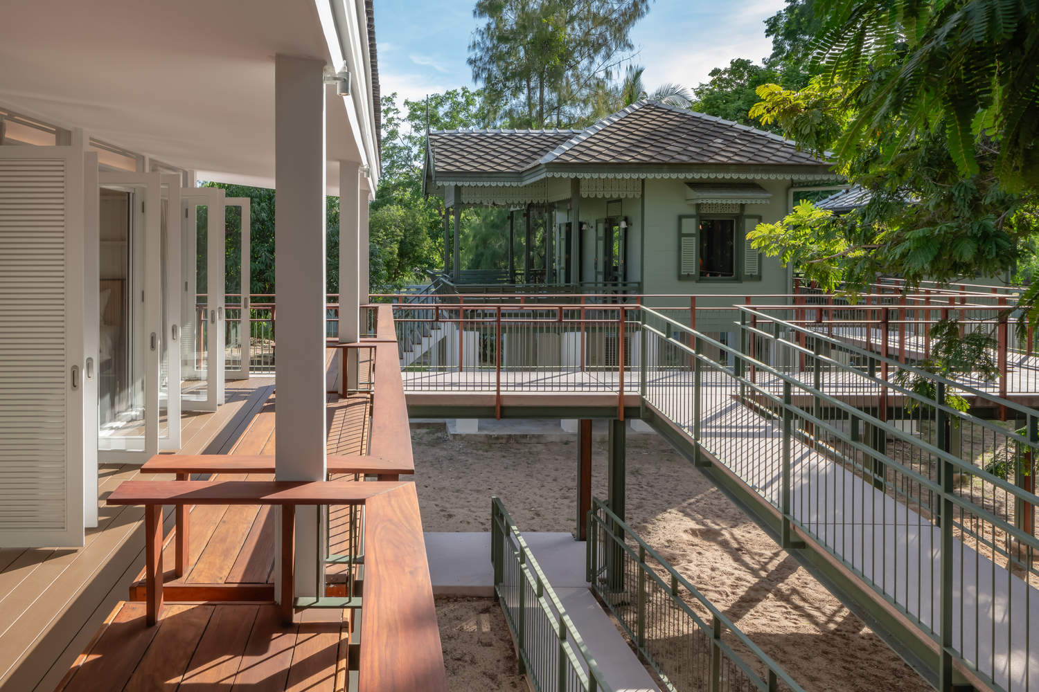 连接记忆和世代——翻修后的“Baan Rom Taan”的主要组成部分之一是连接Cha-am海滨两栋房屋的桥梁。事实上,这座桥是新建的,以原来的桥为原型。