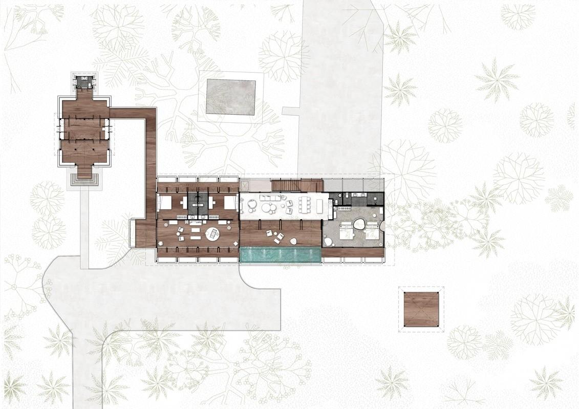 房主解释说,Baan Rom Taan自祖父母一代以来一直是这个家庭的度假屋。两座建筑(Hip Roof House和Gable Roof House)之间的桥梁是记忆的纽带,因为小时候,主人更喜欢走过这座桥,因为桥下有很多狗。这次有机会翻修房子时,要求保持建筑物之间的桥梁完好无损。新计划进行了调整,因为原来的桥挡住了Hip Roof House的前部,它的设计是为了方便轮椅通行,这样老年家庭成员就可以舒适地生活。