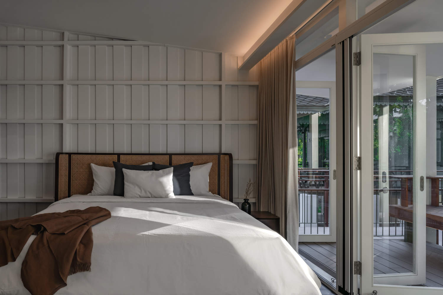 回忆记忆-2018年,当Baan Rom Taan的斜屋顶房屋的翻修项目开始时,我们遇到了一座经过多次翻修的白色房屋。Baan Rom Taan的主人回忆说,这座嘻哈风格的房子已有近120年的历史,曾经是祖父母的蜜月套房,多年来一直在使用。因此,这是一个充满了几代人家庭记忆的地方。当负责翻修这所房子时,国际单项体育联合会团队决心尽可能地保留原始设计。