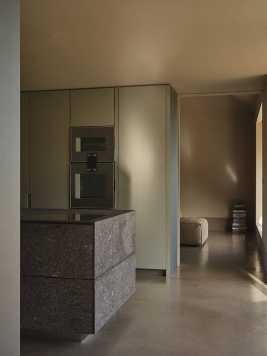 材料的诗意表达: Openfield House对材料的运用并非仅仅停留在实用层面,而是上升到了诗意的表达。建筑师选择原始、真实的材料,如天然石材和木材,这些材料的纹理和色调与周围的自然环境完美融合。设计师将材料视为塑造建筑灵魂的关键因素,将它们转化为对土地的致敬和对人类体验的颂扬。 从混凝土体量到雪松木箱,每一处细节都经过精心考量,强调材料的本质,营造出一种质朴而永恒的美感。这种对材料的尊重,使得建筑不仅仅是一个居住的场所,更是一个能够引发思考和感悟的艺术品。