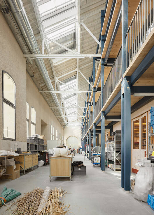 Text description provided by the architects. The Lot 8 project is a collaboration between BC architects & studies & materials, Assemble and Atelier LUMA. The 'Magasin Electrique' is a 2100m2 former 19th century train depot building, and has been renovated to provide a new workspace for the design and research laboratory Atelier Luma, including workshops for timber, metal, ceramic, and textile, alongside dedicated algae and mycelium laboratories, meeting rooms, desk and production space, library and resource centre.