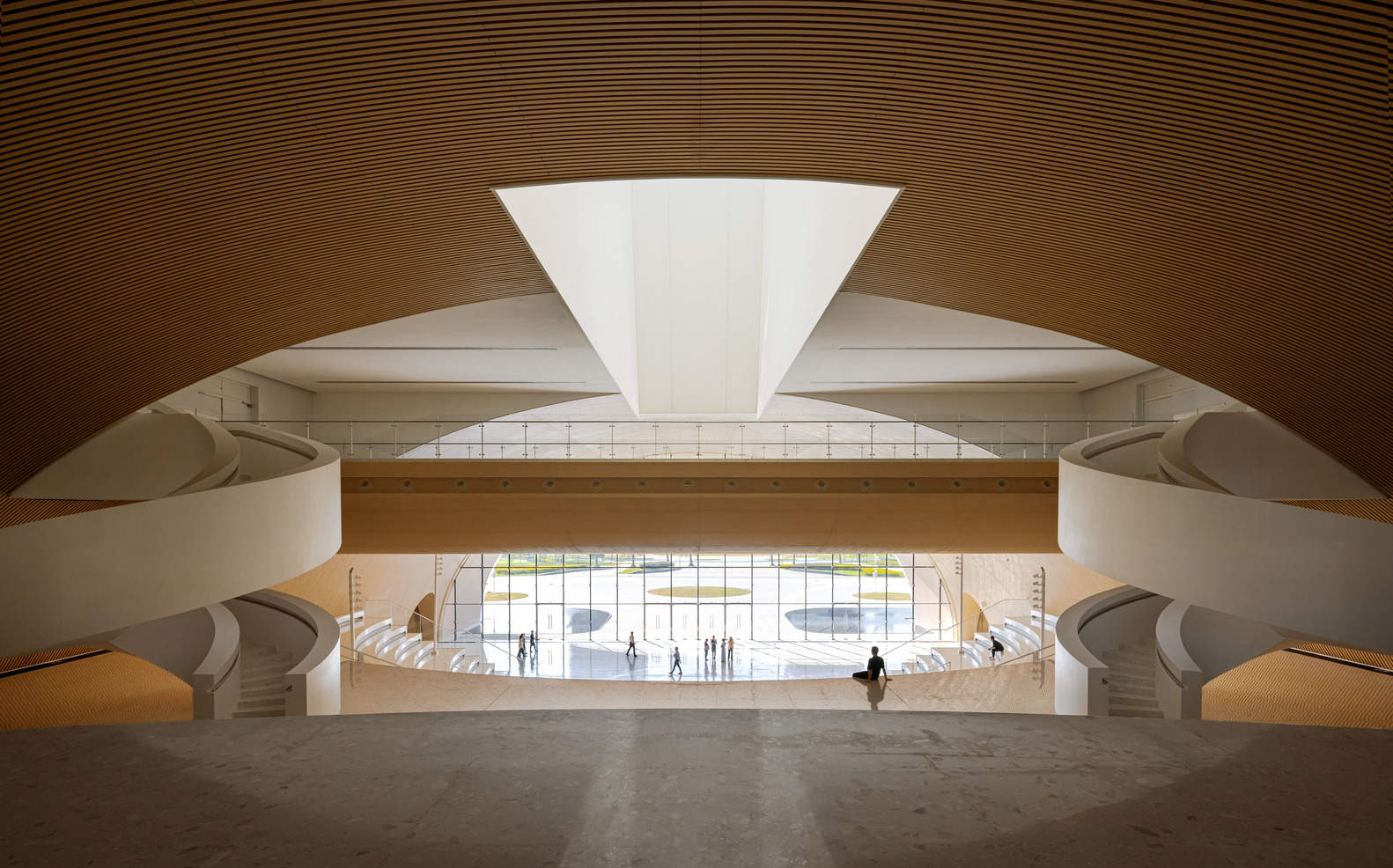 项目概览与空间组织:横琴文化艺术综合体以其宏大的体量和多功能性令人印象深刻。建筑师在设计中巧妙地将九个独立的部门整合为一个统一的综合体,通过“城市客厅”的概念,将图书馆、档案馆、音乐厅等功能划分为三个主要的“大厅”,赋予每个空间独特的个性和功能。这种设计理念打破了传统建筑的单一性,创造了丰富的空间体验。建筑师对空间组织的创新,如垂直村落般的“知识馆”和多孔的“展览馆”,都体现了对多元文化需求的深刻理解,以及对未来城市生活方式的积极探索。