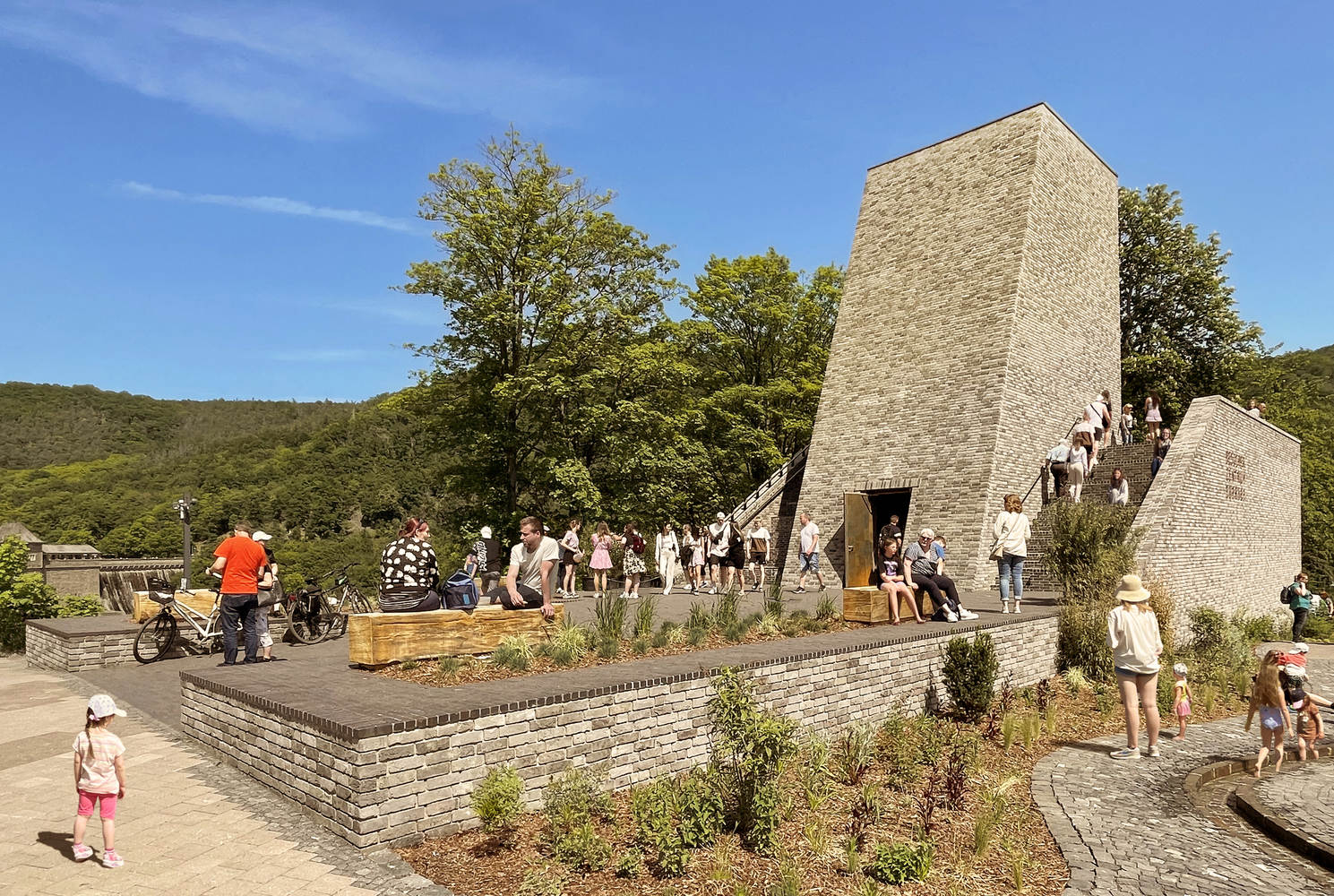 A Strong Connection to the Edersee Dam. At the heart of the visitor centre's concept is its strong connection to the Edersee dam, an iconic structure deeply embedded in the local community's identity. The dam symbolizes the region's transformation from a poor rural area into a nationally significant destination and holds a vivid history - from its construction during the imperial era 100 years ago, its destruction and reconstruction during World War II, to its present-day role as a hub for green energy production and a key landmark in the natural and cultural landscape.