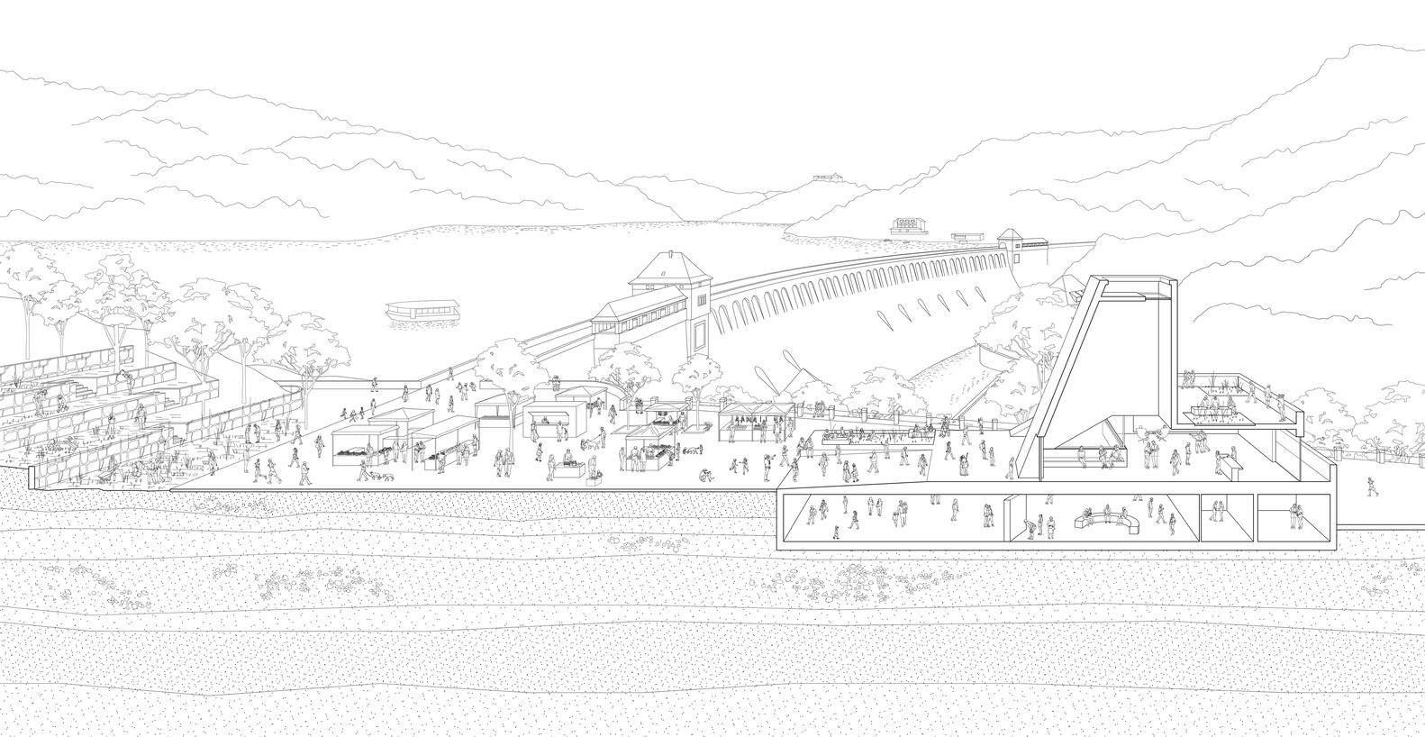 多层次的游客体验一楼和室外区域作为社区空间,促进聚会、教育和文化交流。在内部,游客将被引导通过一个开放且无缝连接的空间体验,将他们带到一个信息和休息区,然后再下降到较低级别的博物馆空间。在这里,一个沉浸式的灯光装置将大坝生动的历史带到了生活中,让客人以一种大气的方式与过去互动。可步行的屋顶进一步增强了体验,提供了不同的视角,不仅展示了大坝,还展示了周围的自然景观。