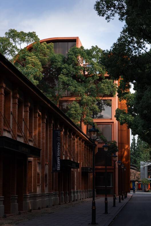 Text description provided by the architects. A Sail on the Vast Sea is located within the EKA Tianwu Art District in the Jinqiao area of Pudong New District, Shanghai. The original site was Building 442, known as "Maritime Home," part of the China Shipbuilding Navigation Instrument Factory from the 1950s and 1960s. The project was commissioned by the owner for a comprehensive planning and renovation design. Positioned near the entrance of the park, just south of "Bancang," the building welcomes visitors with the form of a raised "sail." Rooted in the spirit of navigation and expressed through a strong and forceful writing style, the project seamlessly integrates art and functionality within the public spaces. The interplay of old and new honors the present while looking towards the future.