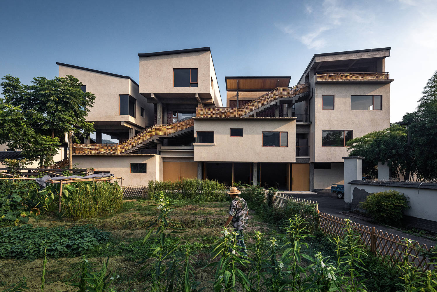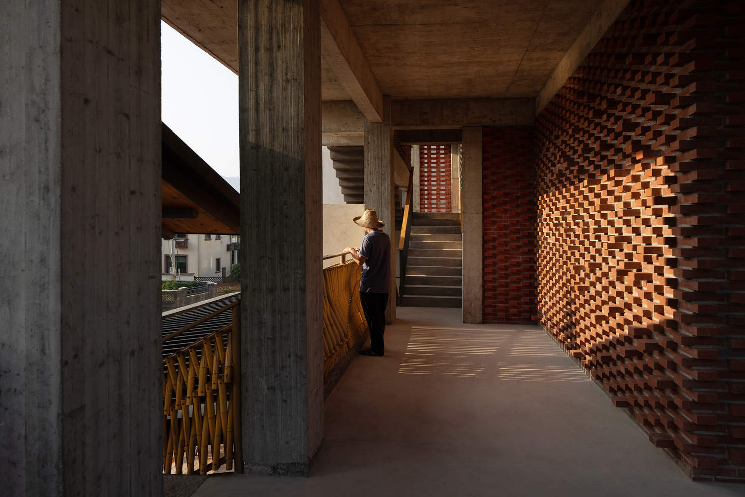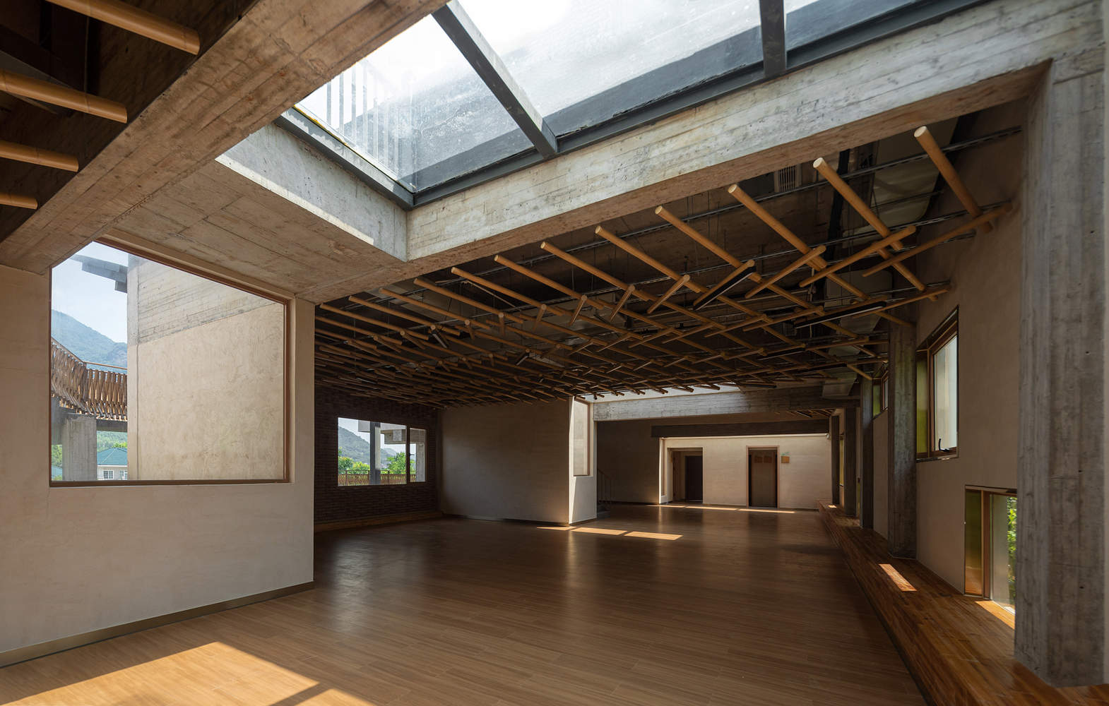 本土材料与文化传承:青山文化馆对本土工艺的运用是其精髓所在。泥灰、竹编等材料直接取自当地村庄,保留了传统建筑的特色,并与现代建筑语言相融合。竹制楼梯栏杆的编织,体现了当地工匠的精湛技艺,其节奏变化也呼应了人体的运动节奏。墙面的泥灰则呼应了青山村传统建筑的朴素、宁静和温暖的色调。这种对本土材料的尊重与运用,不仅实现了建筑的地域性,更重要的是,它在传统与当代建筑实践之间架起了一座桥梁,保持了文化的延续性,使得建筑具有了更深厚的文化底蕴。