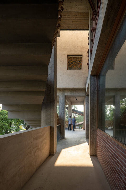 当地工艺在该项目中起着关键作用,泥灰泥和竹编等材料直接来自村庄,保留了传统建筑的魅力。楼梯栏杆由当地竹子制成,由当地工匠编织而成,其节奏变化与人体运动的节奏相呼应。墙壁所用的泥灰也直接来自村庄,反映了青山传统乡村建筑的简单、宁静和温暖的色调。这些元素有助于保持文化的连续性,在传统和当代建筑实践之间架起一座桥梁。