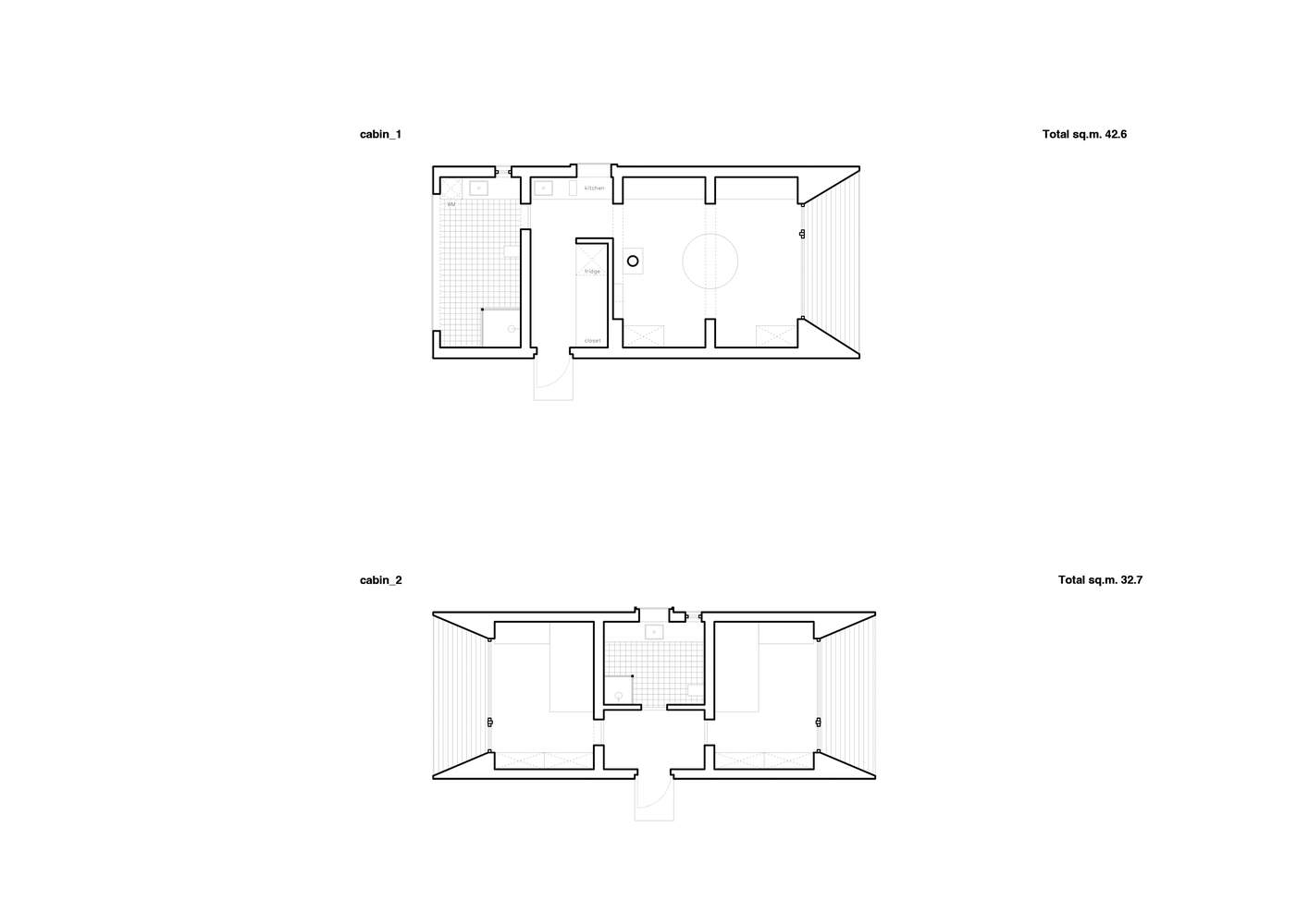 The cabins themselves are made of timber-framed SIP panels on metal piles. This way, their construction did not require deep foundations and other aggressive interventions. In the future, the buildings can be dismantled, and the materials reused.An access track was built for the cabins, and communications were installed underground in order to protect the original natural landscape. Clear water is drawn from a nearby spring well. There are water heaters inside, so the guests can take a hot shower after their hikes.