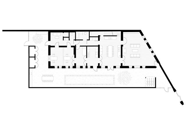随着建筑功能和需求的变化,现有建筑多年来已经重建了几次。门窗洞口已更改,新的房间划分已创建,地板已升高。当这座建筑在2018/2019年左右被收购时,它的维护很差,屋顶漏水,外部石膏严重受损,内部破旧,20世纪后期的标准很低。通过一些明确而精确的干预,为这座建筑创造了一个整体,多年来,这座建筑在某种程度上已经消失了。办公室的现有入口由花园通往家庭大厅和厨房的新入口补充。新的开口无缝地融入了现有的窗户节奏,并借鉴了现有窗户的尺寸。现有的窗户得到了保留和翻新。外墙按原样抹灰。