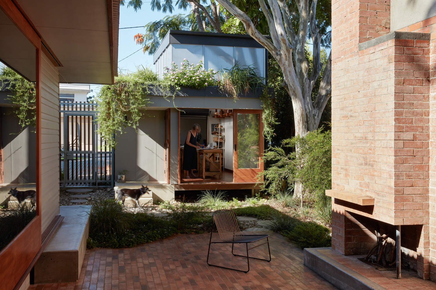 One of the owners, an artist and woodcarver, required a studio space that could facilitate creative practice and group workshops. The other required a generous office space to work from home. Both these forms are distinct but in dialogue with each other, simultaneously separate and shared. Their siting and shape define a funnelled procession of entry from the street that opens up into a gradual revealing of courtyard, house, and river. The river in all its moods is omnipresent.