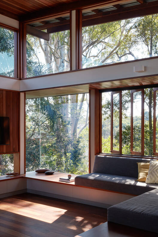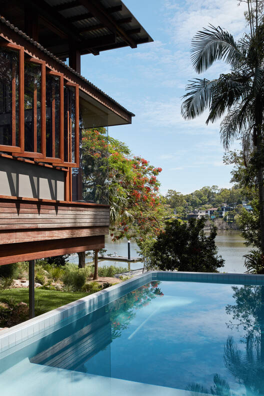 Text description provided by the architects. The riverfront project was conceived as a cluster of intimate permeable fragmented forms, gathered around the original brick fireplace. It serves as a physical and metaphorical hearth and creates a soulful connection to both place and previous occupation. This has provided a crafted counterpoint to the more singular river view.