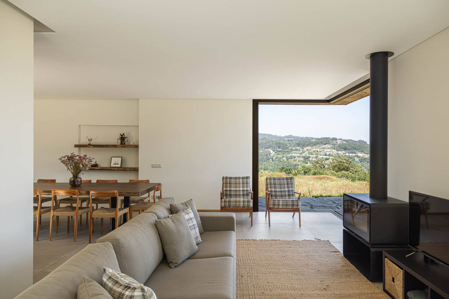 Integration - Located in a village in Paredes, with river Tâmega as a backdrop, Casa da Levada blends into the rural landscape where it is situated, featuring a design that integrates architecture with the surrounding nature. An architecture that evokes the idea of a built natural environment, an architecture that arises from the very material of which the site is made. The shape of the house is molded by the terrain, creating a visual and physical continuity between the building and the natural environment.