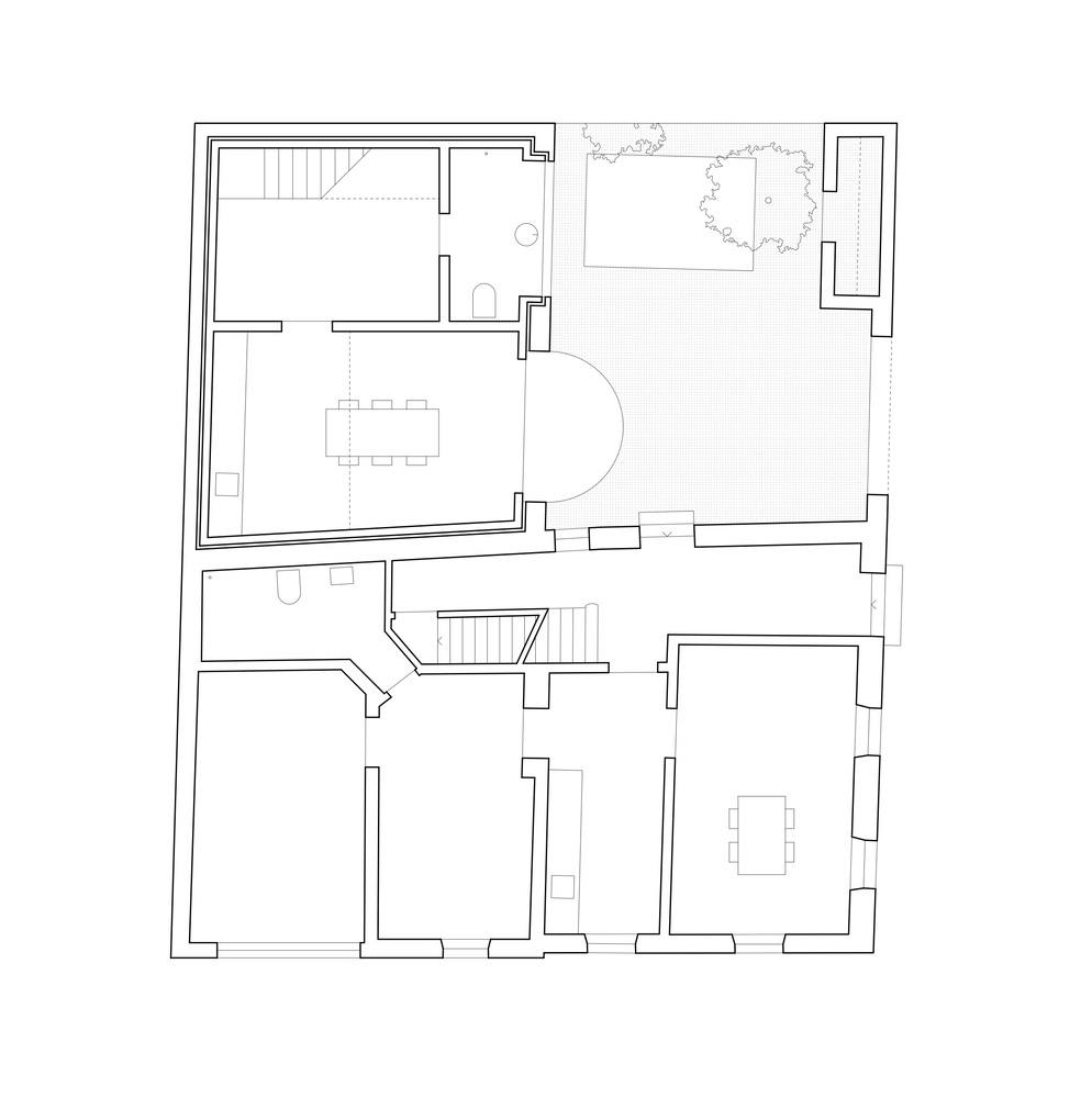 The small courtyard, which used to be enclosed, now serves as an undisturbed outdoor space for all residents.