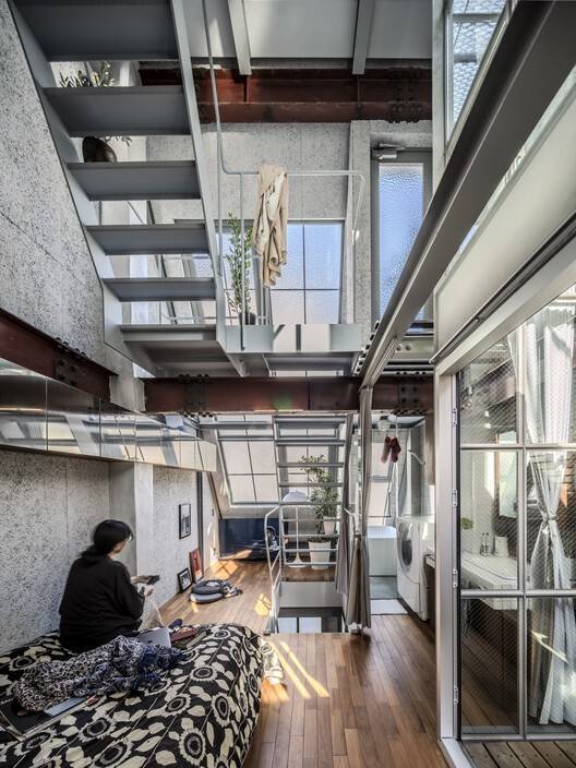 Text description provided by the architects. In Osaka, there are usually cluttered and comfortable towns. Many of the residents who were born and raised there are attached to their own town. To be precise, they do not love the town very much, but may just be accustomed to the normal life there that has been repeated over the years. The daily scenes of these towns have no academic value and contain many illegal elements, but the strength of the residents who move things forward with a kind of selfish self-responsibility creates an extraordinary combination of ordinariness or a sense of security surrounded by noise, giving the city a strange sense of solidarity.