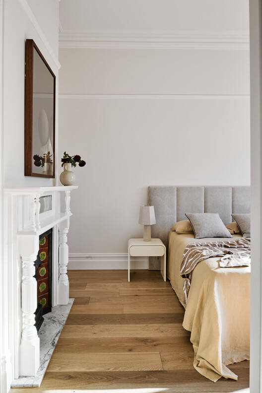 新旧对话与材料质感的和谐统一:项目的另一大亮点在于新旧建筑元素的巧妙融合。设计师对场地原有遗产部分的精心修复,保留了其原有的建筑特色,同时无缝地融入了新的功能。这种新旧对话的设计手法,使得Hug House既保留了历史的韵味,又满足了现代生活的需求。在材料的选择上,设计师也展现了高超的品味。硬木黑杨木胶合板的温暖色调,中和了混凝土地板的坚硬感,使整个空间显得温馨舒适。这种不同材质的碰撞与融合,创造出丰富的视觉和触觉体验,提升了居住的品质感,完美体现了建筑的质感。