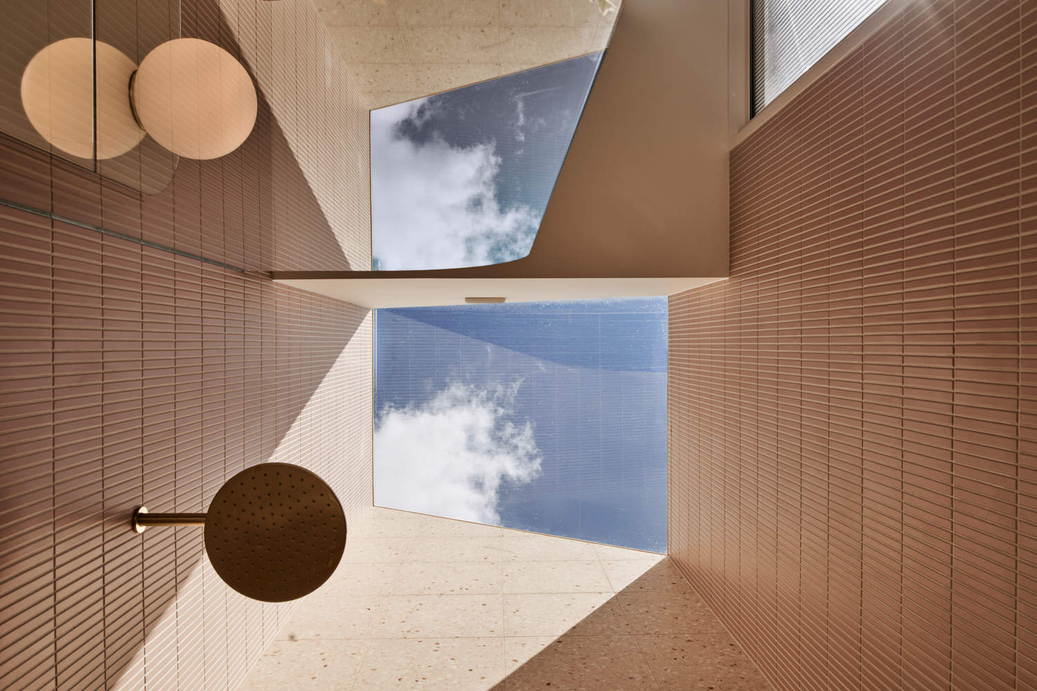 The home's siting has been carefully considered to create a true sense of retreat from its suburban context. The neighbouring dwelling to the southern boundary is discreetly concealed through the courtyard's positioning, reinforcing privacy while maximising views towards the towering eucalyptus canopies beyond. Within the living spaces, high windows frame the treetops, filtering light while shielding views of the perimeter fencing—crafting a world that feels enclosed yet deeply connected to nature. At its core, the Hug House is an expression of FIGR's architectural philosophy—one that values fluidity, material honesty, and an intimate dialogue between built form and landscape.