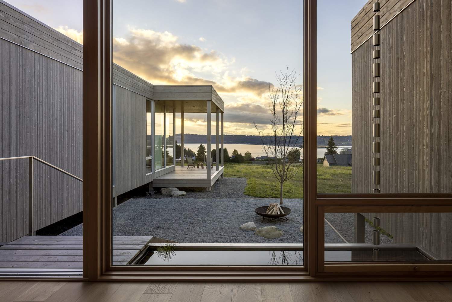 这所房子的体验始于从贝尔维尤出发的旅程。船主乘坐Mukilteo Clinton渡轮穿越普吉特湾,前往Whidbey岛乡村的偏远地区。车道把他们拉近了,蜿蜒成一个稳定的斜坡,穿过草地植被——蓝色燕麦草、墨西哥羽毛草、Adagio Maiden草——和夏季盛开的花朵——锥形花和鼠尾草首席景观设计师Jody Estes说:“我们想通过景观美化来‘重塑’场地。”。“清除入侵物种并制定森林恢复计划非常重要。”一条蜿蜒在五英亩土地周围的步行道。在未来的一个阶段,步行道将通往森林中的冥想亭。