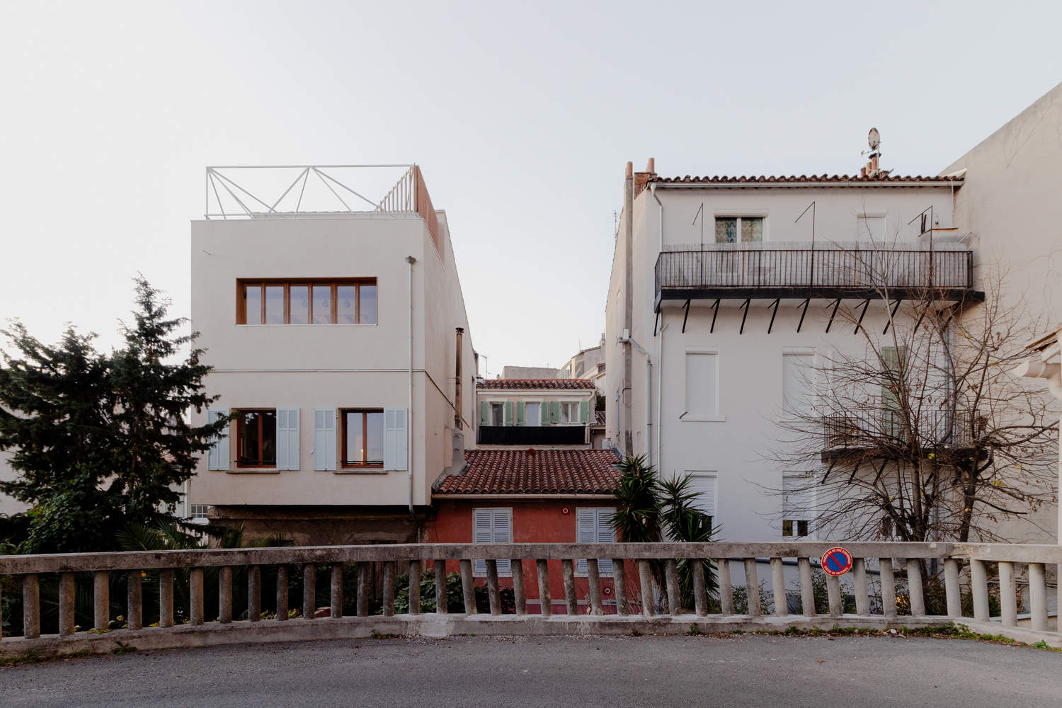 通过遵守现行的城市规划规定,立面延伸了庭院侧的布局,恢复了街道侧的建筑顺序。这一限制被用作在南面创造一个与生活区无缝连接的户外空间的机会。受“马赛露台”的启发,新的“戏剧性”立面保留了隐私,提高了夏季的舒适度,同时保持了城市的一致性。