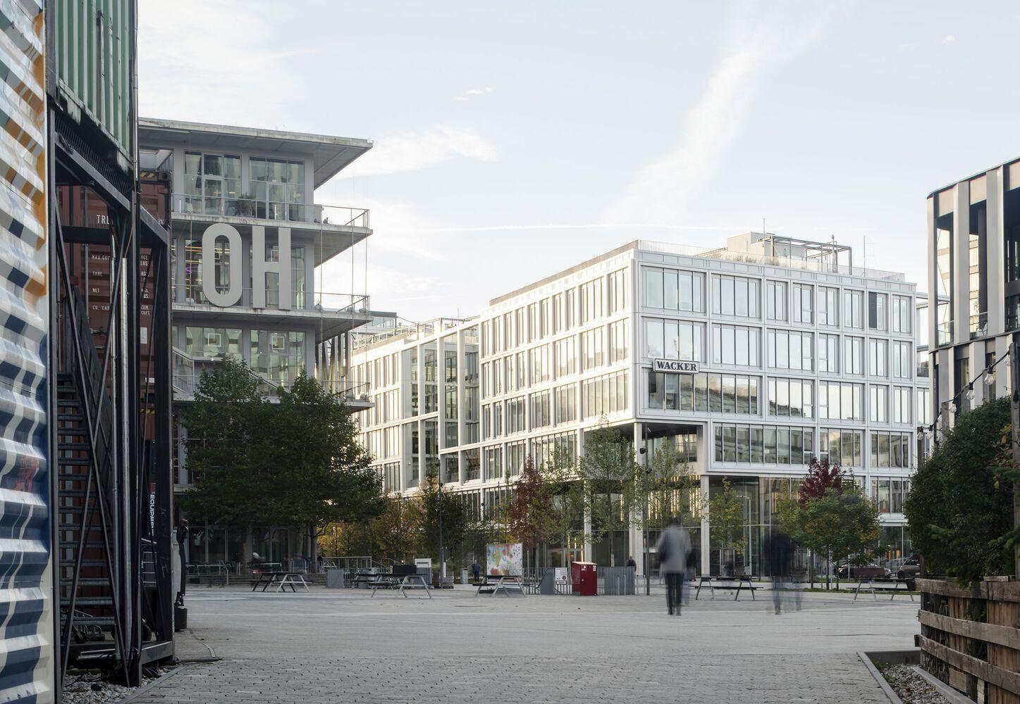 Text description provided by the architects. In the heart of Werksviertel-Mitte, Munich, close to the city center, the Wacker House creates a vibrant and flexible workplace in a unified building, capable of offering an exciting blend of offices, culture, entertainment, and shops. Expressed through a transparent building with a strong connection between the inside and outside, the Wacker House connects with the surrounding community in a permeable, lively, and engaging fashion. The architecture manifests itself as a large unifying grid structure, with a distinct curvy signature, inspired by the former rail tracks of the Werksviertel, that opens towards a common pedestrian zone in the area.