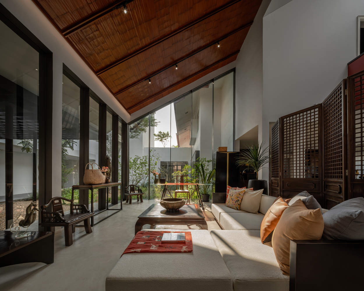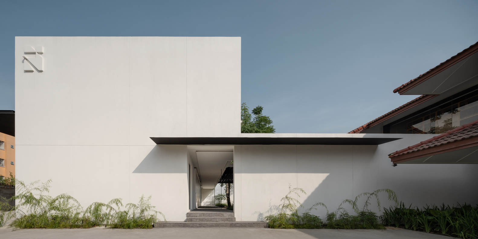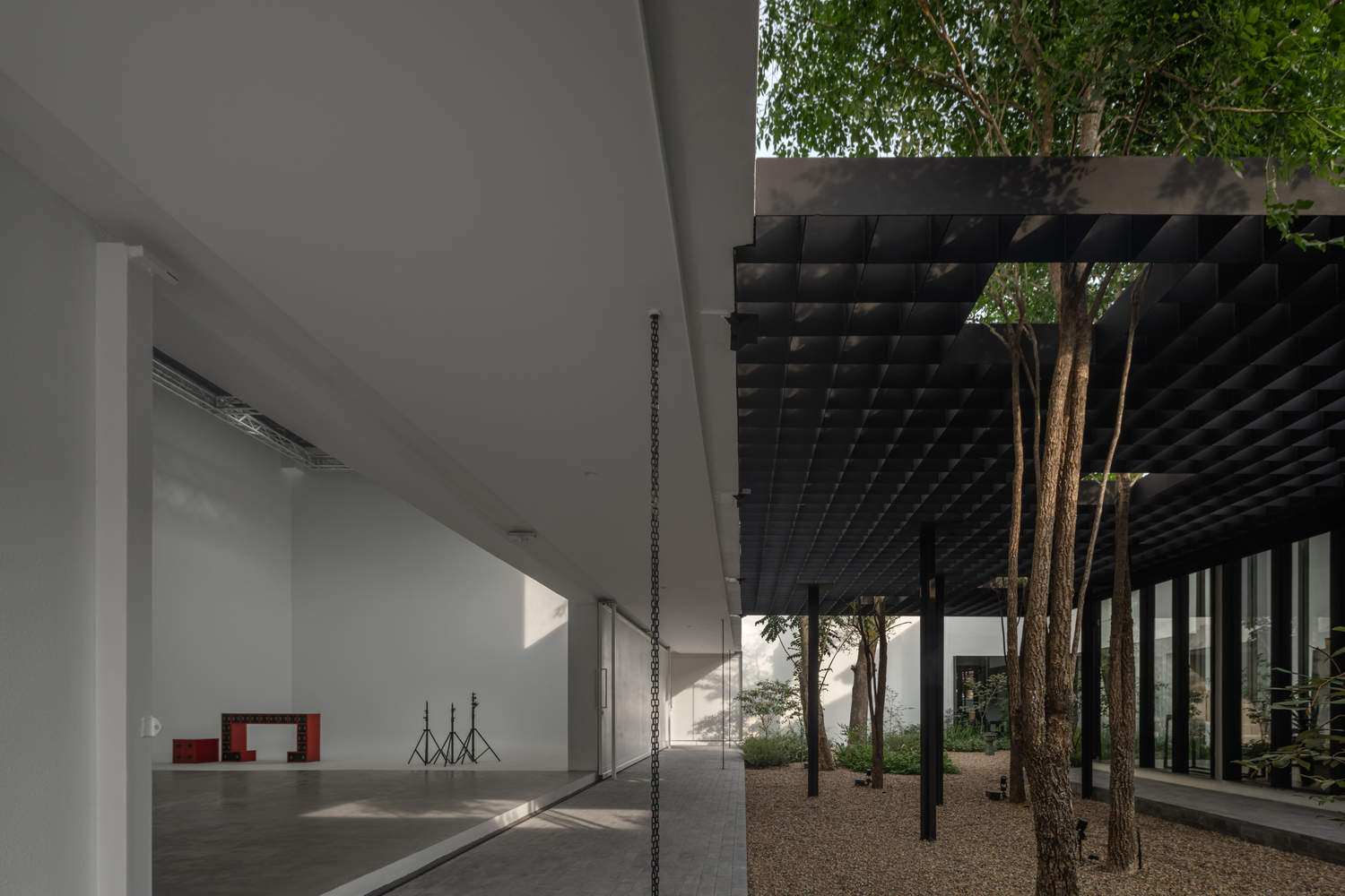 Alongside the renovation of the home, a modern photography studio, "Saeng Ngao Sathan" (Place of Light and Shadow), was added next to the gallery. The studio, designed to reflect the owner's passion for photography, complements the gallery while introducing a contrasting minimalist style. Both the renovated gallery and the new studio are equally integral to the project, with the two spaces connected through a shared gathering area under a waffle roof, creating a harmonious blend of antique and modern aesthetics.