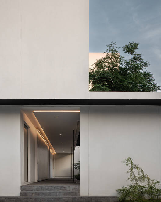 除了翻修房屋外,画廊旁边还增加了一个现代摄影工作室“Saeng Ngao Sathan”(光影之地)。该工作室旨在反映主人对摄影的热情,在引入对比鲜明的极简主义风格的同时,与画廊相辅相成。翻修后的画廊和新工作室都是该项目不可或缺的一部分,这两个空间通过华夫饼屋顶下的共享聚会区连接在一起,创造了古董和现代美学的和谐融合。