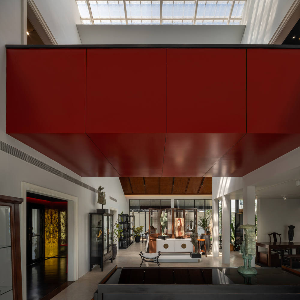 The AGAL Gallery is more than just a furniture studio; it is a celebration of Oriental design and craftsmanship. Known for its bold use of antique Thai-Chinese elements, AGAL has developed unique techniques, such as brass casting and gold leaf application, which set its pieces apart. The gallery's design reflects this craftsmanship, creating an immersive brand experience. A vibrant red walkway connects the chamber-like display rooms, each of which highlights different furniture styles and techniques.