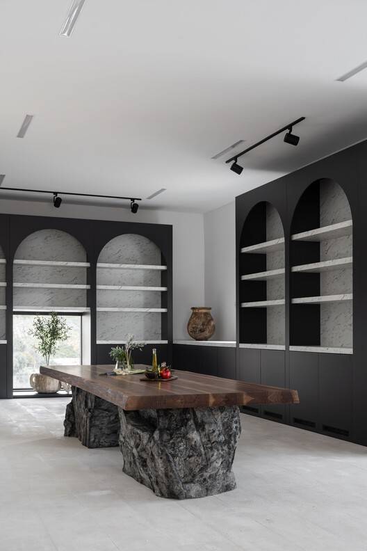 教育和行政空间-根据项目任务,在大楼的一楼有一个多功能厅,为黑山所有橄榄种植者提供永久教育和研讨会。大厅可容纳80名游客。它与行政部分有关,行政部分由三个永久雇员办公室组成。这个街区旁边有一个小厨房和一间浴室。鉴于该设施的教育功能和对游客的开放性,没有严格的工作、教育和参观区域划分。橄榄屋室内设计的灵感来自老城酒吧的周边环境,但目的是对传统元素,如石头、拱门和橄榄树进行现代诠释。它们成为建筑内部的主要图案。进入后的主要体验是向老城区酒吧延伸的景色,这是酒吧市的文化和建筑遗产。