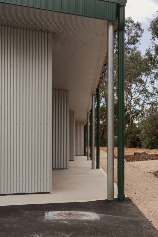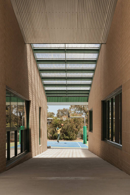 Text description provided by the architects. Syndal South Primary School is an educational hub in the leafy urban area of Mount Waverley on the lands of the Woi Wurrung Wurundjeri people of the Kulin Nation, the new Block A building of Syndal Primary School replaces an aging asbestos laden LTC building with new Administrative offices, Junior Classrooms, and a publicly accessible Library. The design proposal aims to contextualise the proposed Block A in its suburban setting by incorporating familiar domestic archetypes of the front porch and the verandah into circulation spaces and thresholds. The majority of the spaces are consolidated under a single roof which pitches north and south in deference to the neighbourhood street and to avoid overshadowing existing hardcourt play areas.