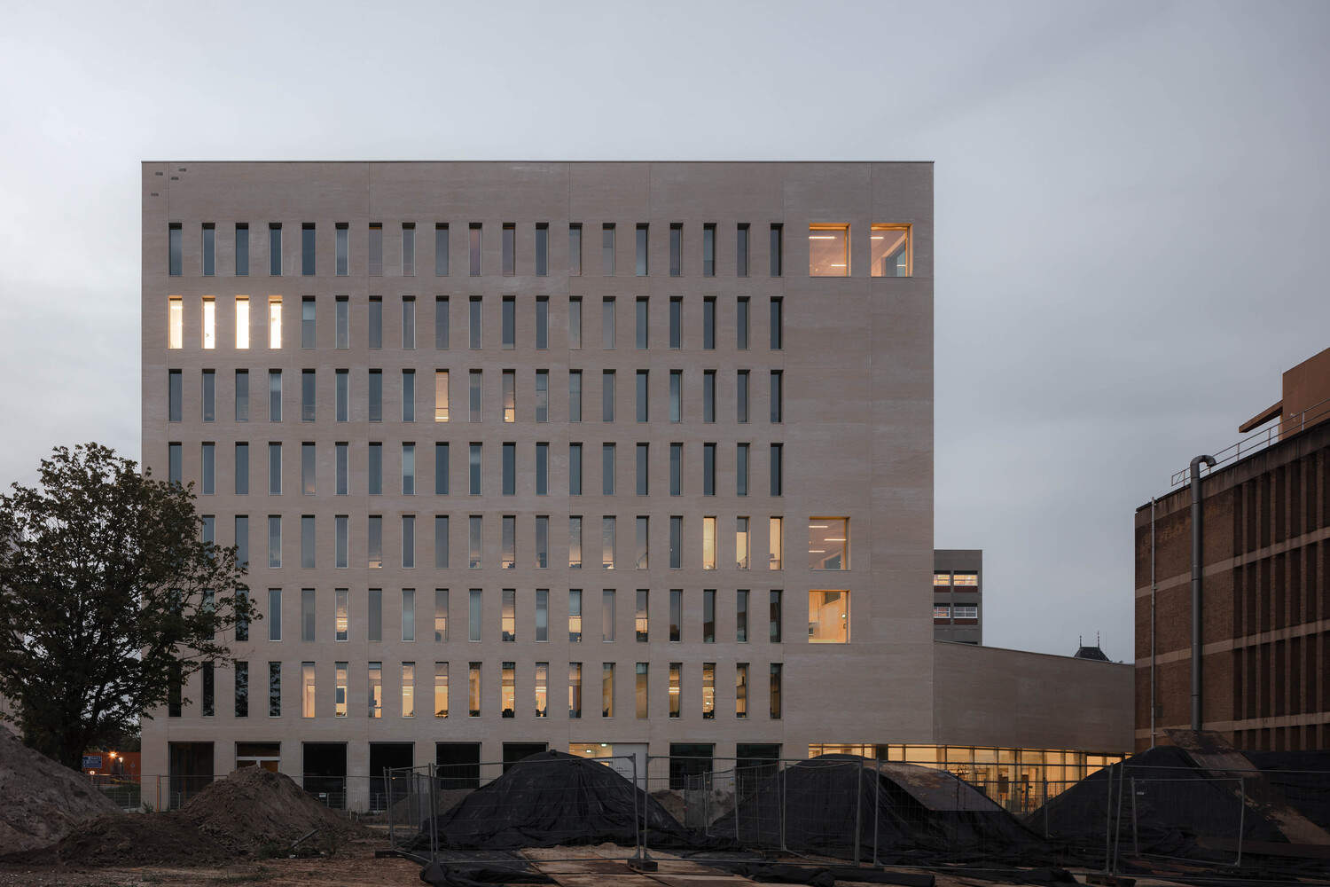 Groningen, the largest city in the northern Netherlands, hosts a student population of over 60,000. Located just outside the historic city, adjacent to the University Medical Center Groningen (UMCG), the Healthy Ageing Campus unites students and researchers from the Medical Sciences Faculty. KAAN Architecten has designed the first education centre in a planned series of shared facilities to support clinics, research and industry on the Healthy Ageing Campus. The project reconnects the campus to Groningen's historical city centre after extensive development in the northern area of the UMCG. The plot became available by removing the existing road extending from the city centre. Positioned centrally on this axis, the building serves as a recognisable landmark, reinforcing the connection between the campus and the city. Apart from the integration of patio gardens at different levels and high-quality public spaces designed by Felixx Landscape Architects, the new Education Centre links various UMCG facilities. It also enriches the northern entrance of the campus by extending the outdoor public space into the interior, enhancing the direct connection and fluid circulation throughout the buildings.