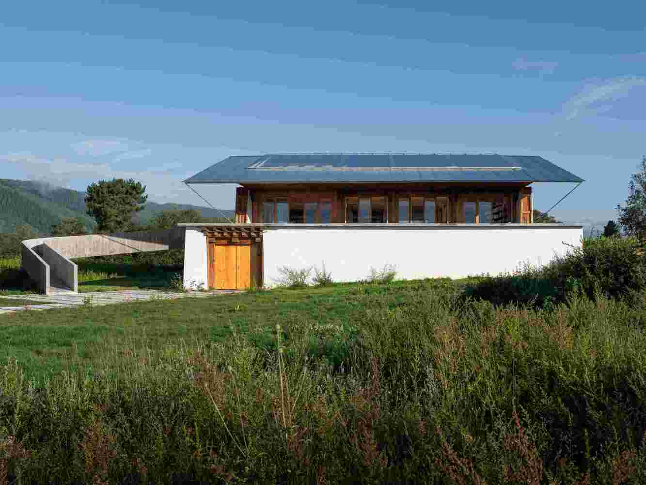 建筑师提供的文字描述上海图书馆前卫位于小中甸镇武功村,由三座传统的藏族农舍改建而成。这些现存的房屋是中甸地区常见的典型“山片”房屋。这种藏族民居风格是香格里拉高海拔地区独有的,那里经历了丰富的雨雪。它代表了西藏农牧文化对当地气候和环境的典型适应,利用当地可用的材料,并根据该地区的具体情况量身定制。