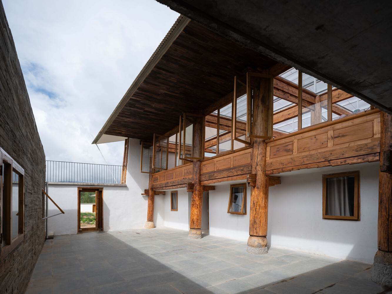 The climate in Shangri-La is quite harsh. The cold winter sets in every November and lasts until April of the following year when the land slowly begins to recover. By the time the plateau is cloaked in green again, it is already May. The months of June, July, and August constitute the rainy season, with abundant rainfall. Often, the sky is covered with thick clouds, and it only clears up by evening. Even in summer, one can occasionally feel a damp chill. The plateau experiences intense sunlight, and winters are frequently clear and sunny. Modern Tibetan residential houses have developed a sunroom system. A common practice is to enclose the entire south-facing courtyard with glass, creating a large greenhouse that heats the interior of the house. This approach has become increasingly popular and refined in recent years, to the extent that in Shangri-La City, the prefectural capital, sunrooms have become a standard feature in all new residential constructions. This contemporary vernacular architecture has inspired the primary strategy for our renovation of these three Tibetan houses.