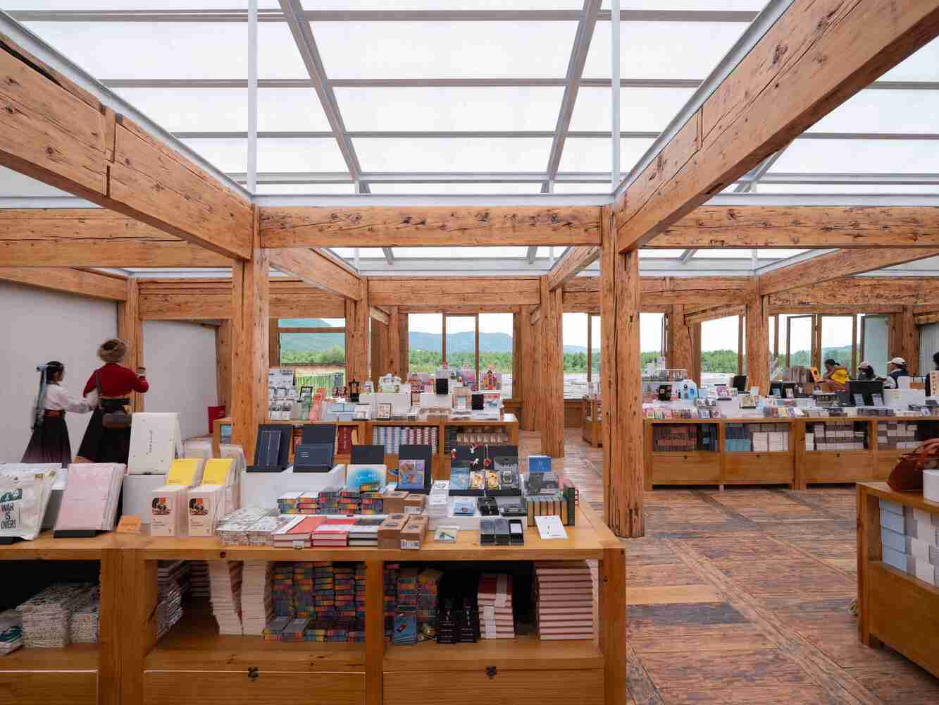 The three Tibetan houses are designated from east to west as the bookstore, a cultural and creative products shop, and a café, respectively. Accordingly, we adapted the original spaces of the Tibetan houses to meet these three distinct functional needs. The bookstore required a definitive, large space, embodying the atmosphere of a "temple of words" (as described by Yunnan based poet Yu Jian) to meet the expectations of visitors. Although Wugong Village is only half an hour's drive from the high-speed rail station and the highway exit, the region has not yet become a mature destination, and most visitors come specifically for the experience. Therefore, we carved out a two-story atrium in the center of the first Tibetan house, with bookshelves lining the walls and a surrounding wooden structure forming a gallery on the second floor. All books are placed within easy reach, facilitating browsing and reading.