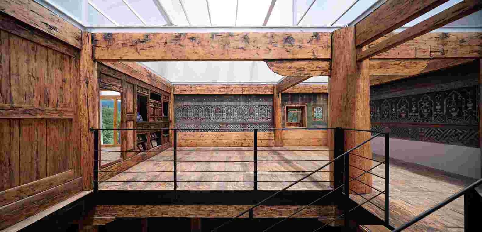 亮点一:尊重历史与环境的巧妙结合:本项目最令人赞赏之处在于其对原有藏族民居的尊重与保护。建筑师并未选择推倒重建,而是充分利用现有的木结构,将其作为设计的骨架。这种“修旧如旧”的设计理念,不仅节约了成本,更重要的是保留了建筑的历史记忆和文化价值。同时,设计巧妙地融入了当地的气候特点,采用阳光房的设计理念,为建筑注入了现代功能。通过可调节透光率的聚碳酸酯板,巧妙地解决了采光问题,实现了对传统民居的现代化改造,展现了对环境和历史的深刻理解。