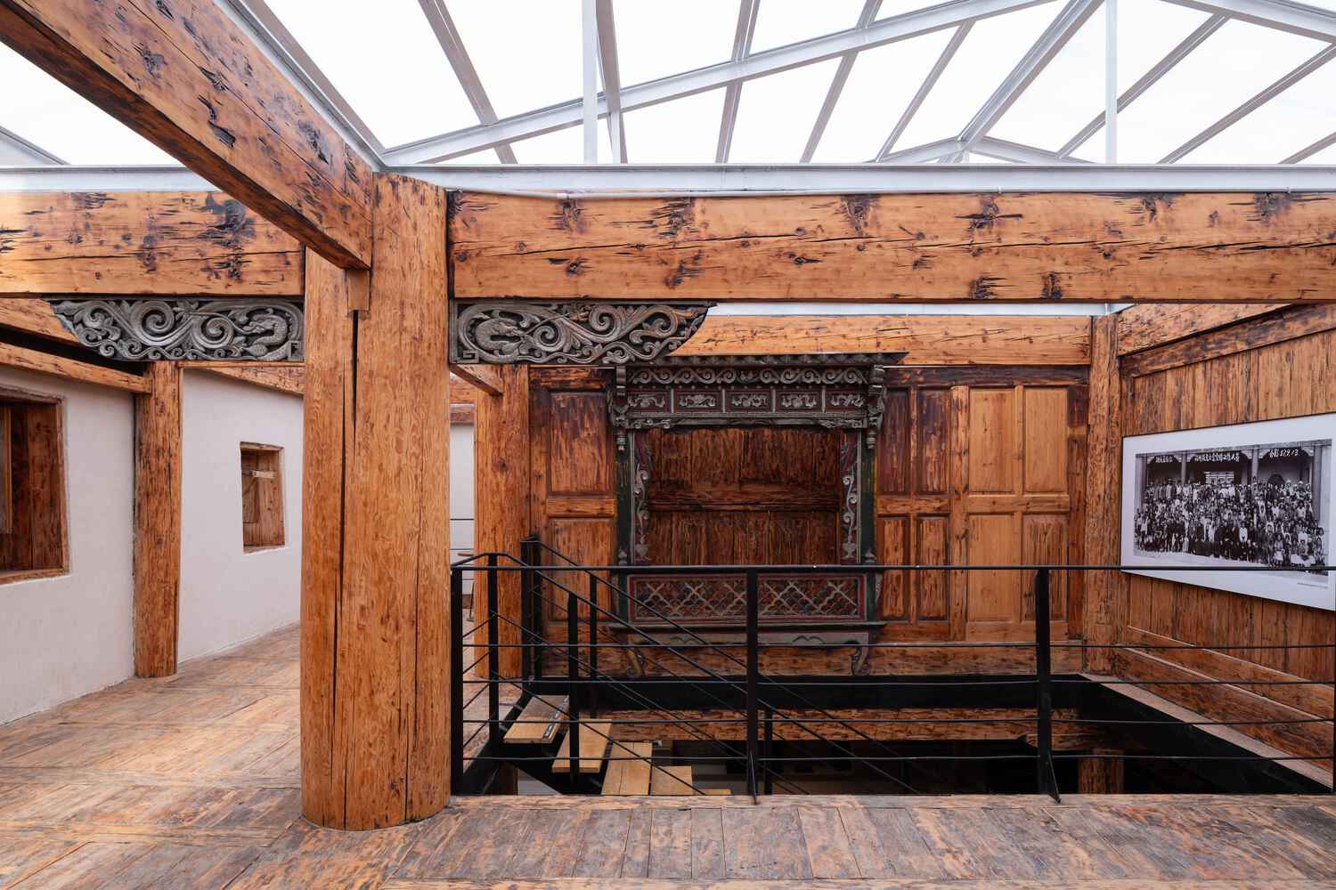 表演性是这个改造项目的根本立场。由于主要的木结构完好无损,我们努力保护它;由于夯土墙可以防风防雨,并具有优异的热性能,我们修复了损坏或倒塌的部分并保留了它们。由于屋顶已经毁坏,传统的“木瓦”屋顶系统已被时代淘汰,因此不需要多愁善感——我们用新的系统取而代之。