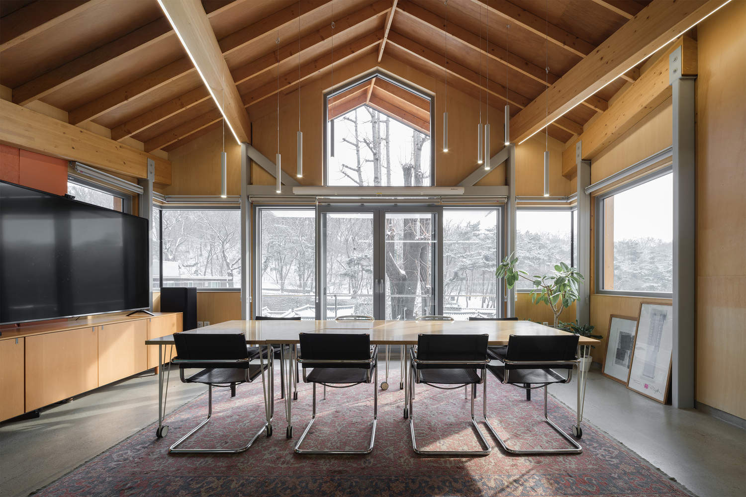 Sustainability and Cultural Reflection – The studio represents the evolving relationship between Korean tradition and modernization. Its design honors hanok elements while incorporating modern construction and sustainability principles. The combination of concrete, steel, and timber is both economical and aesthetically pleasing, while natural insulation methods help minimize energy use.